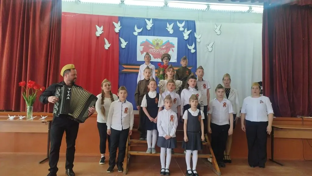Дети, преподаватели, родители и ученики пели, танцевали, играли на музыкальных инструментах. вызывая не только чувство гордости у зрителей, но и слова радости и благодарности за ту работу, что они сделали при подготовке. Нарядно украшен зал сиренью и тюльпанами! Мелодии прошлых лет, пилотки, гимнастерки, сапоги, офицерские погоны, погоны рядовых.